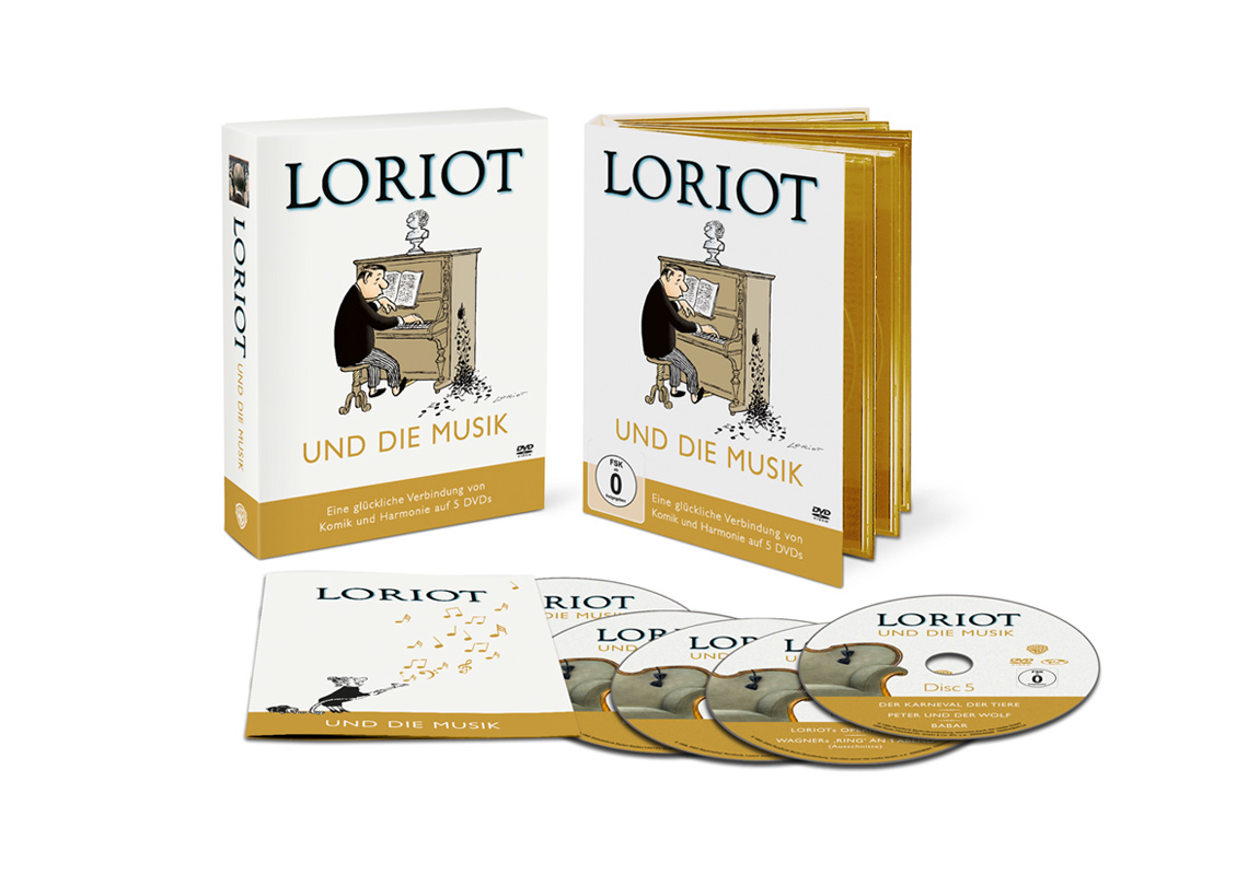 Produktverpackung, Booklet und Disclabels für die DVD-Kollektion "LORIOT und die Musik"