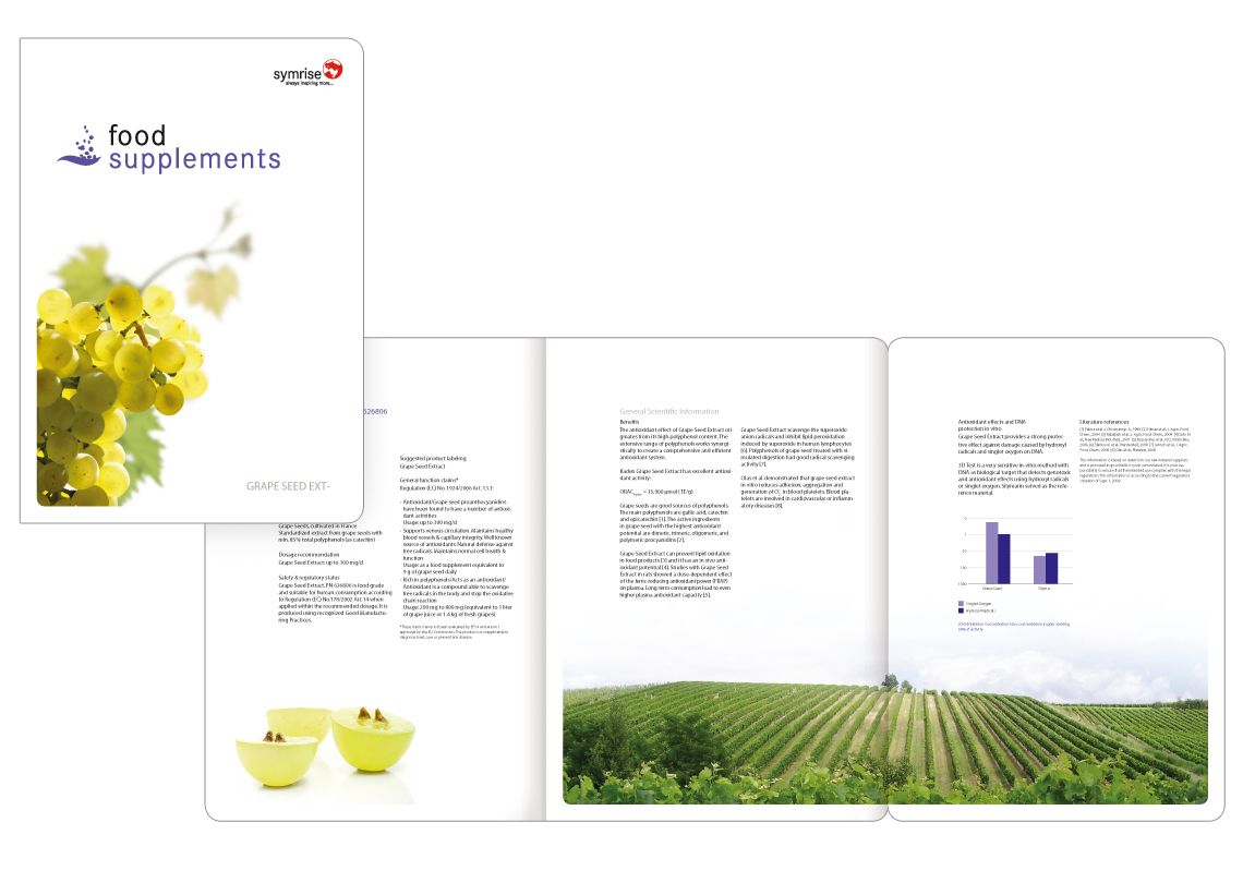 Food Supplements: Produktbroschüre – Titel- und Innenseiten