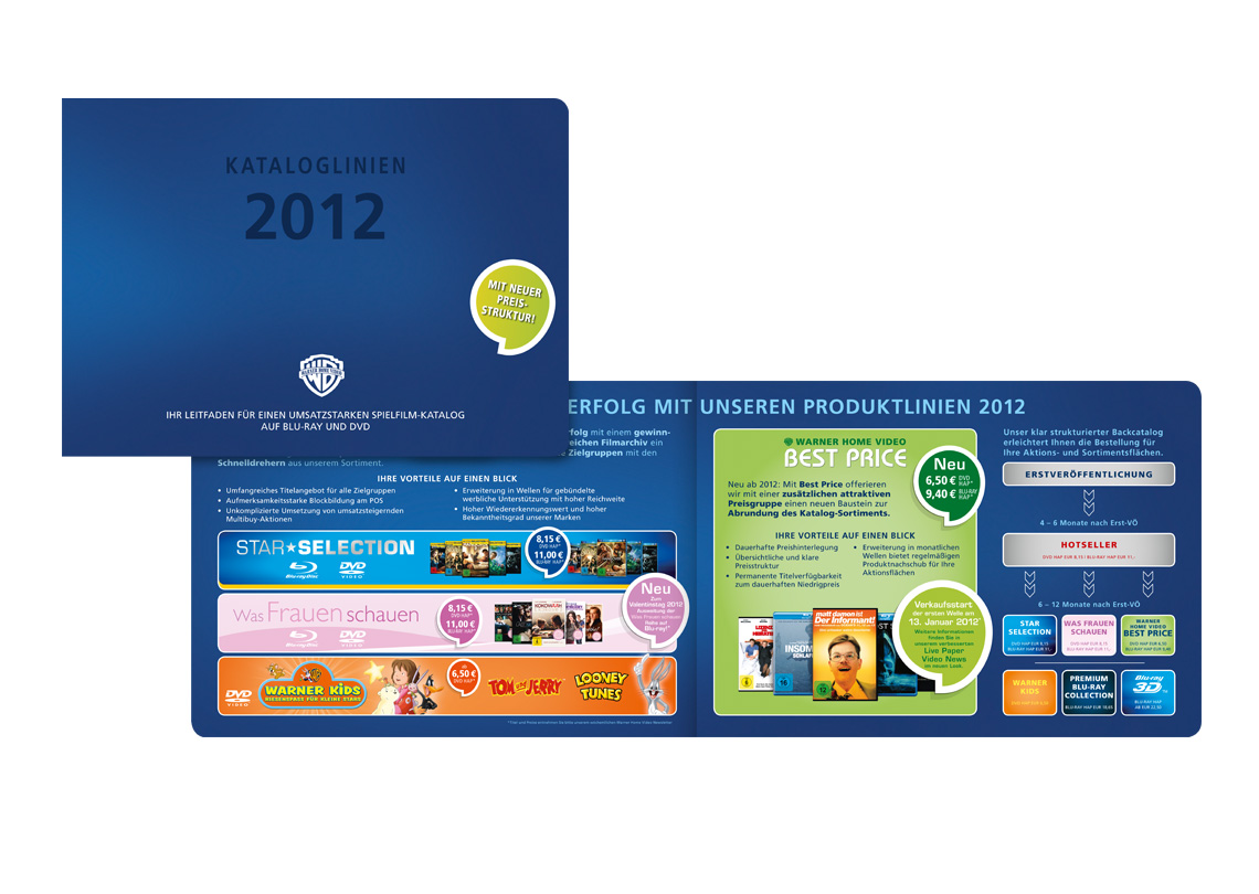 Salesfolder für die Warner DVD und Blu-ray Disc Kataloglinien 2012 – Titel und Innenseiten