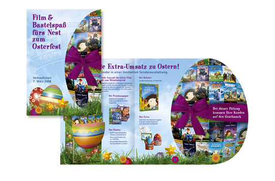 Salesfolder für eine Warner Osterpromotion – Titel und Innenseiten