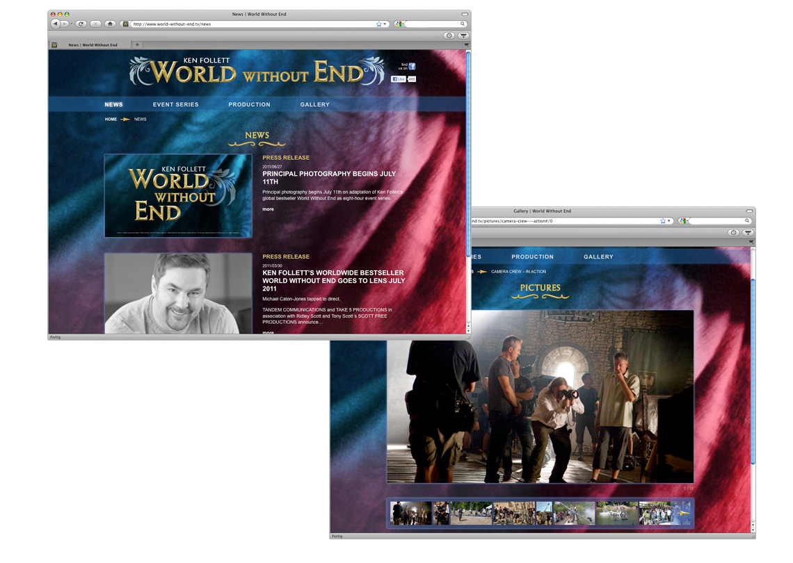 Internetauftritt für die TV-Event-Serie „World Without End“