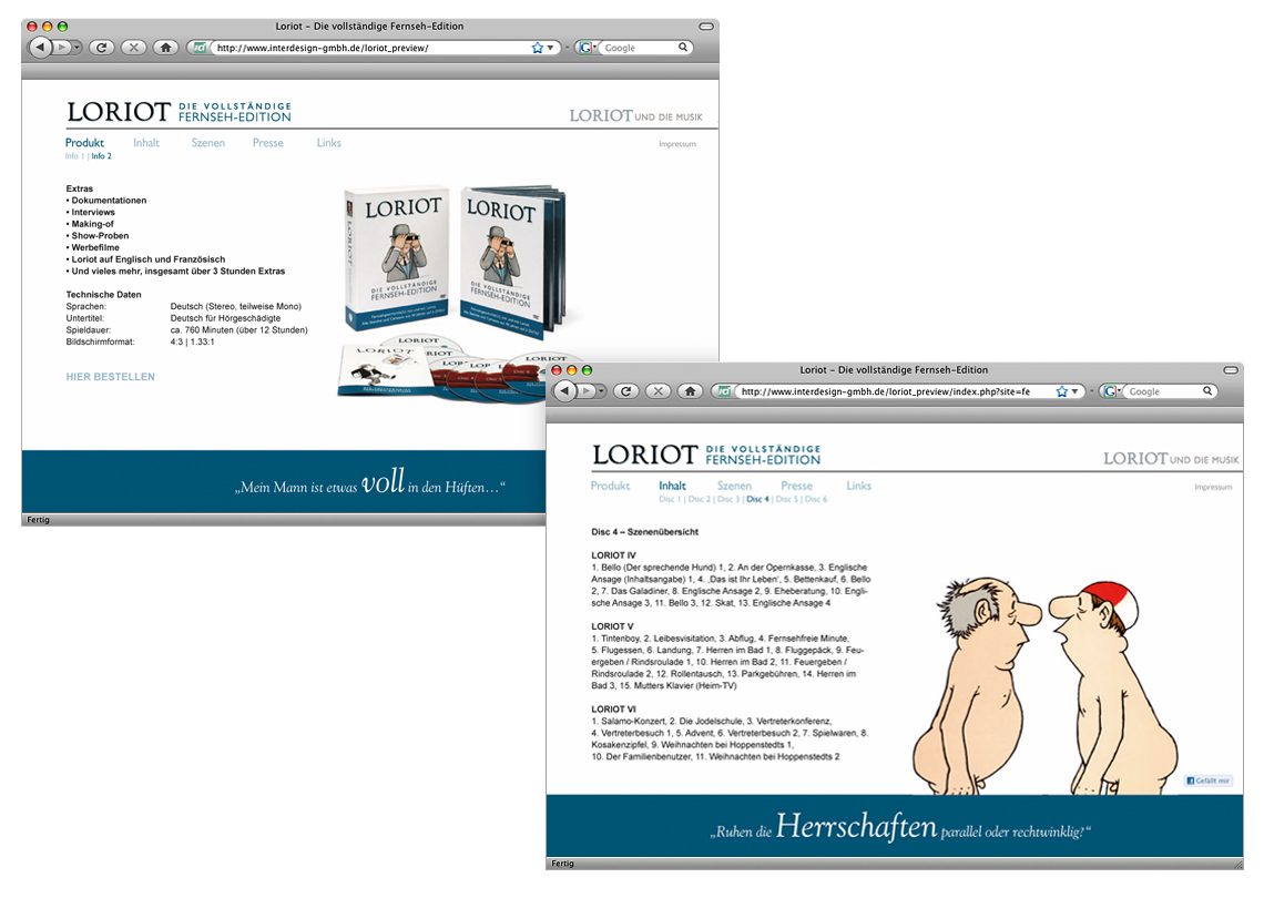 Internetauftritt für die DVD-Kollektion „LORIOT“